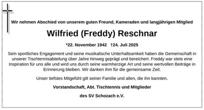Lieber Wolfgang, unser Mitgefühl ist bei Deiner Familie – wir wahren Dir ein ehrendes Gedenken.